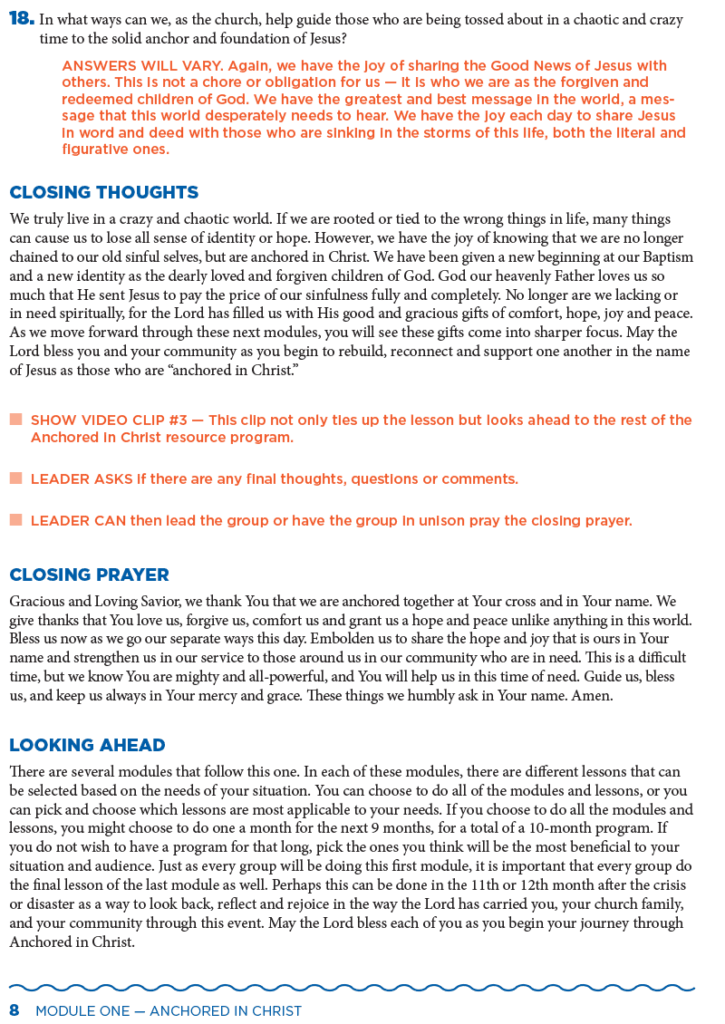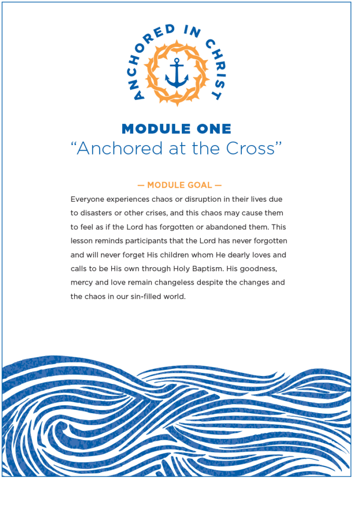 Anchored in Christ can be used for a single Bible study or congregational event, or the four modules can be used over an entire year to bring extended comfort and hope to a congregation and community during a time of trial.
