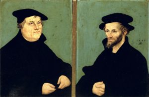 They were a strange pair: the bombastic, passionate Luther, and the more reserved, more scholarly Melanchthon.  It would be a mistake to think of Melanchthon as the “brains” and Luther as the “brawn” of the Reformation, though. Luther was himself a talented scholar and one of the greatest theological minds in the history of Christendom.  There was, however, a difference of approach.  Melanchthon was the boy wonder, a child prodigy who came to Wittenberg to teach Greek; he was very comfortable in the halls of academia.  He wrote the first dogmatic textbook examining the topics of theology in an organized fashion according to the theology of Luther.  Luther was a pastor in addition to being a professor, and thus more grounded and down-to-earth, even as he spent his entire career in the classroom.  He was comfortable in the rough and tumble of conflict and used to taking a firm stand.  Luther, above all, wanted the truth; Melanchthon, often peace.