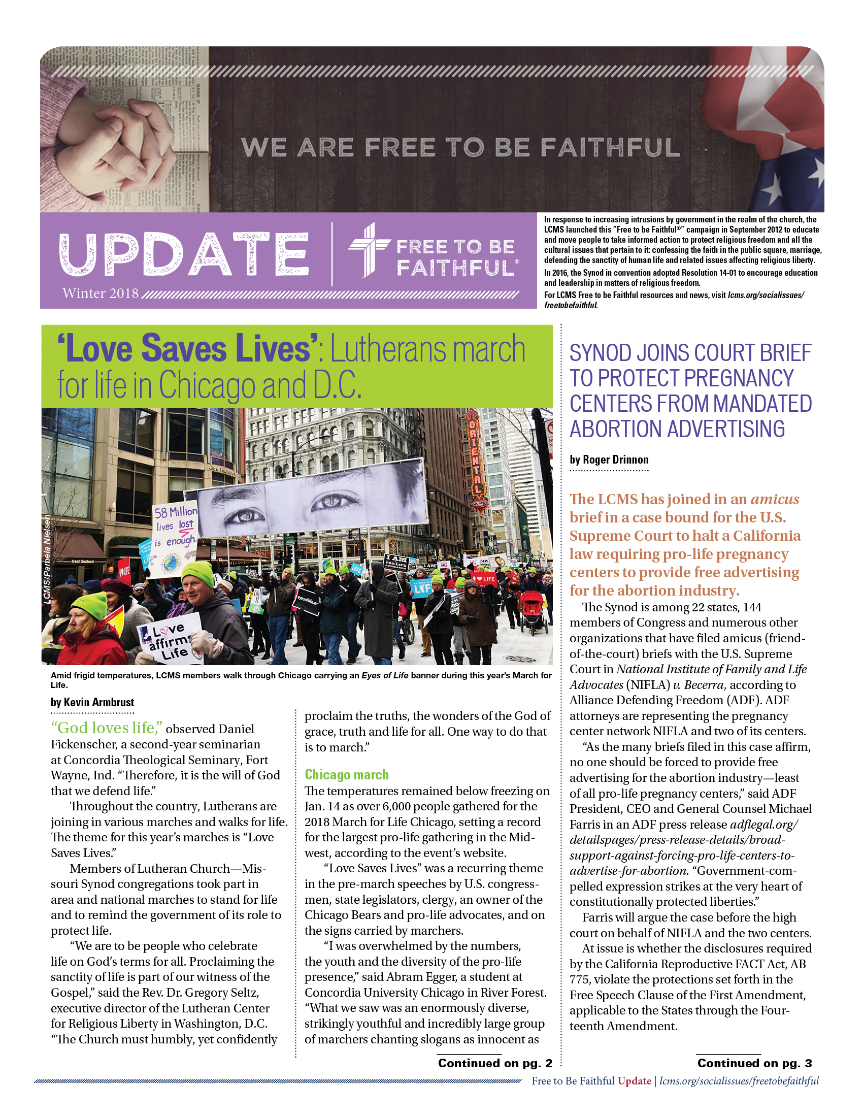 If you would like to stay informed on issues related to marriage, life, religious freedom or the establishment of the Lutheran Center for Religious Liberty, please send your name and address to freetobefaithful@lcms.org.