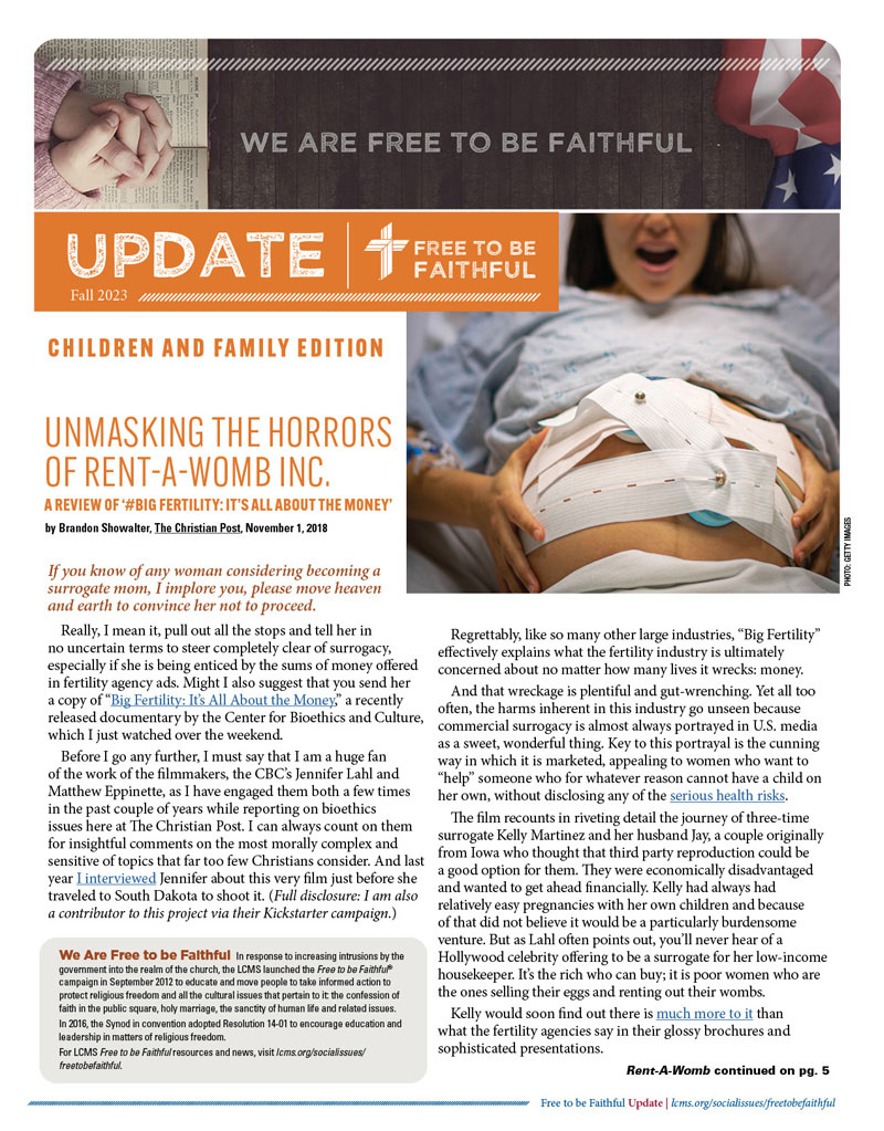 If you would like to stay informed on issues related to marriage, life, religious freedom or the Lutheran Center for Religious Liberty, please send your name and address to freetobefaithful@lcms.org.