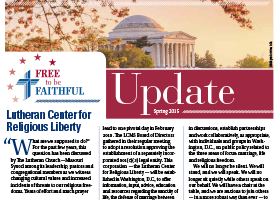 ‘Free to be Faithful’ – Spring 2015 newsletter The LCMS 11 years ago This month, the Supreme Court is hearing oral arguments on same-sex marriage as it pertains to states’ rights. Learn how we as Lutherans unpack the issue in the spring 2015 issue of the Free to be Faithful newsletter. Download Newsletter Learn more about LCMS’ Free to be Faithful campaign on lcms.org/freetobefaithful, and view newsletter archives.