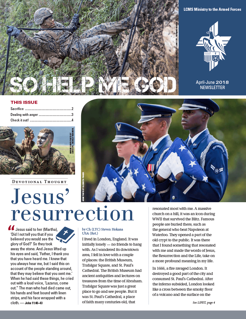 The So Help Me God newsletter from the LCMS Ministry to the Armed Forces gives encouragement as to the promise and confidence that believers in Jesus Christ receive through His resurrection.