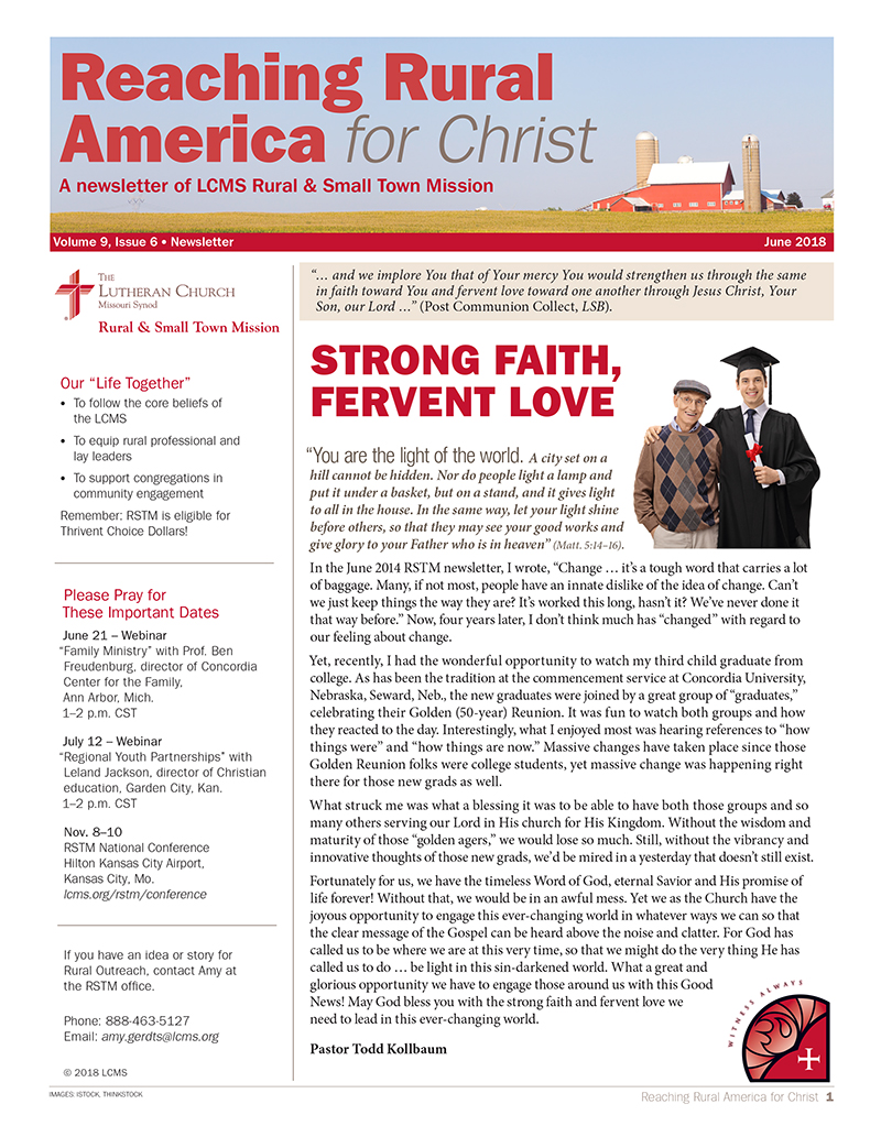 This issue of Reaching Rural America for Christ focuses on the Christian family and the important role it plays in exponentially growing the kingdom of Christ.