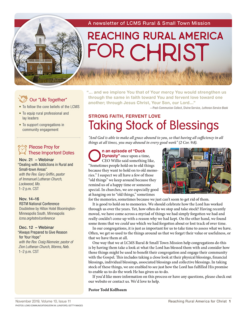 The November 2019 issue of Reaching Rural America for Christ provides insight into the role the Body of Christ can play in helping individuals struggling with addictions, especially in rural and small-town areas.