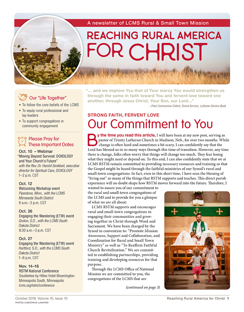 The October 2019 issue of Reaching Rural America for Christ highlights how DOXOLOGY (doxology.us) can help church members take a fresh look at their congregation and discover ministry possibilities that might be hidden behind the challenges.