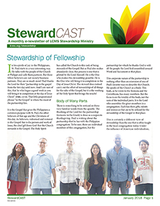 In the January 2018 issue of StewardCAST, LCMS Stewardship Ministry discusses stewardship of fellowship among believers — the Body of Christ.