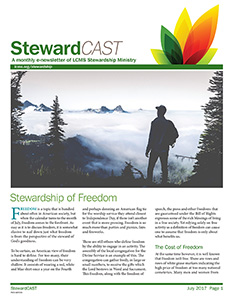 In the July 2017 issue of StewardCAST, LCMS Stewardship Ministry discusses the connection between freedom and stewardship. God has in Christ set His children free from the burden of sin so they can be the faithful stewards of the freedom that is given in the Gospel.