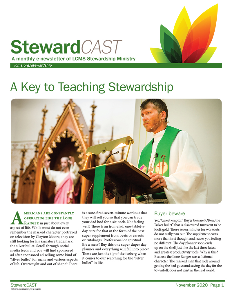 In the November 2020 issue of StewardCAST, LCMS Stewardship Ministry addresses the importance of utilizing opportunities to teach stewardship year-round.