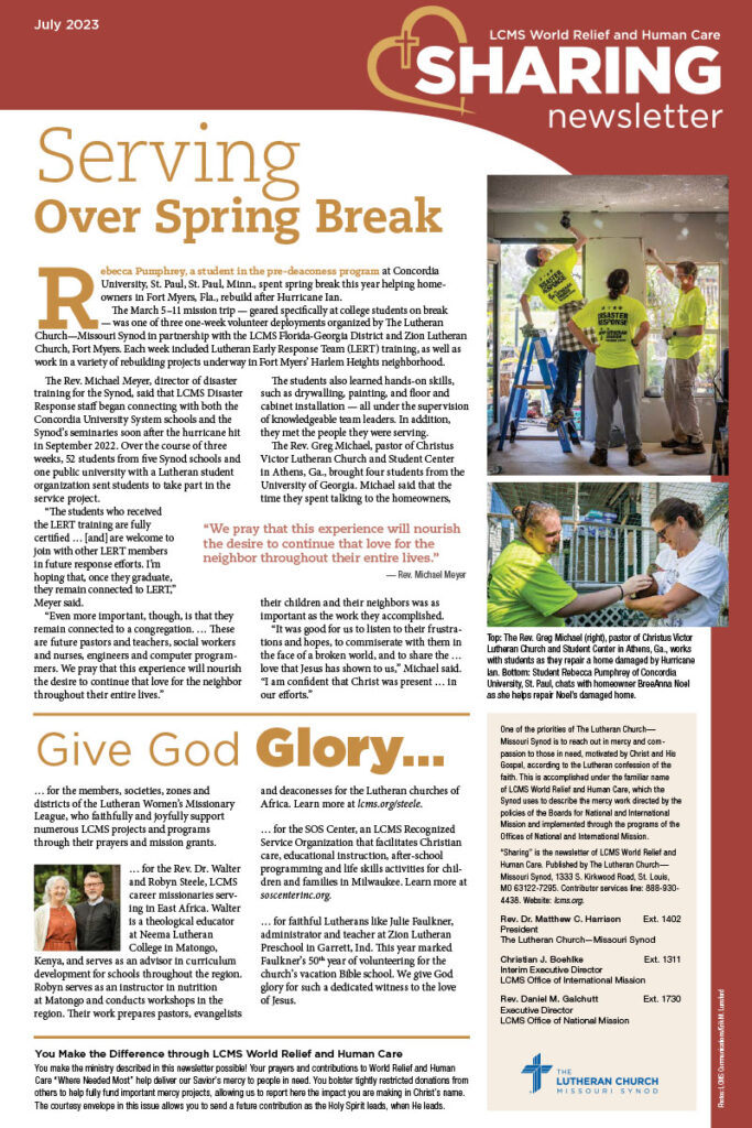 • College students spent spring break learning about the Synod’s Lutheran Early Response Team program and serving victims of Hurricane Ian in Fort Myers, Fla.