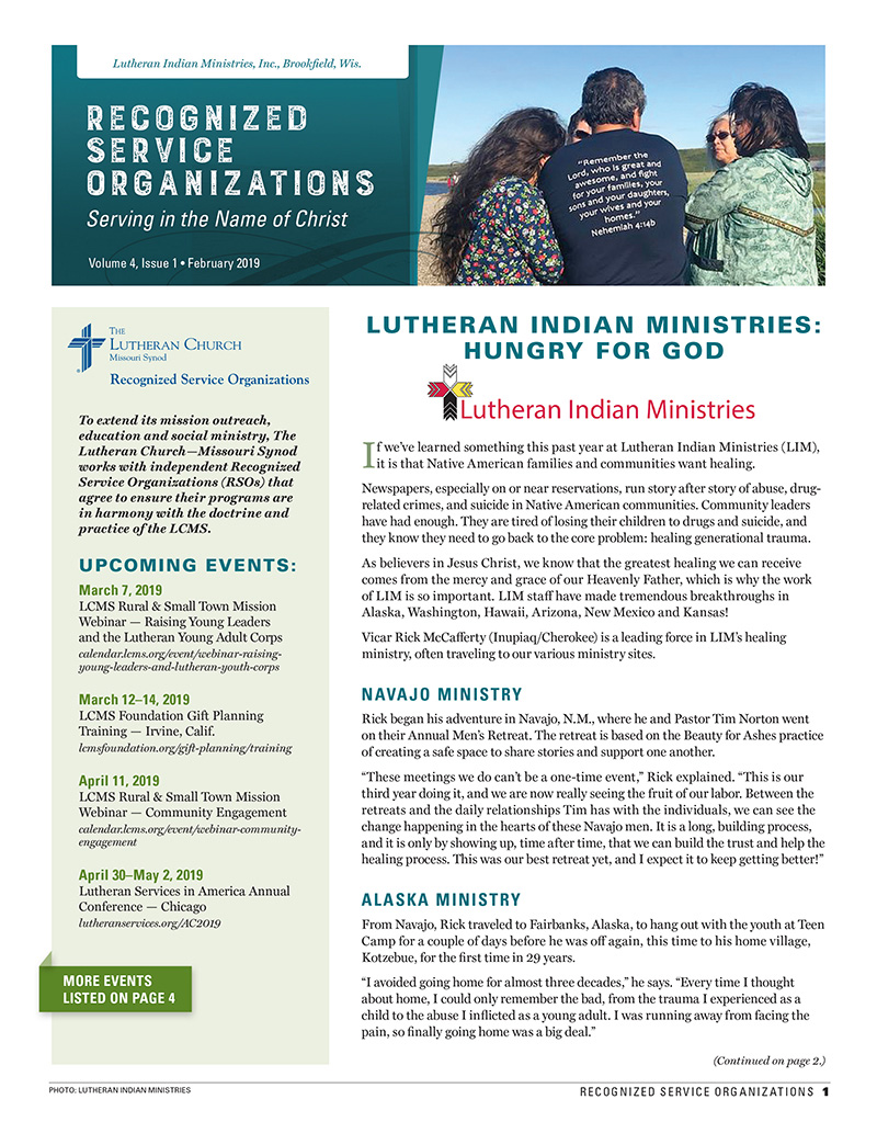 RSO News Update: First Quarter 2019 — The quarterly newsletter of LCMS Recognized Service Organizations features Lutheran Indian Ministries (LIM), which is based in Brookfield, Wis.