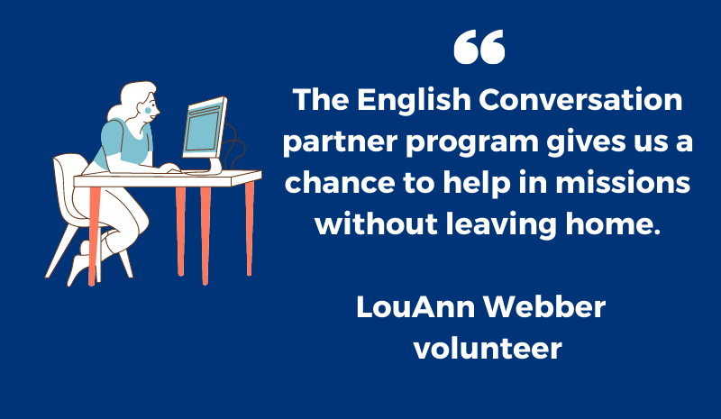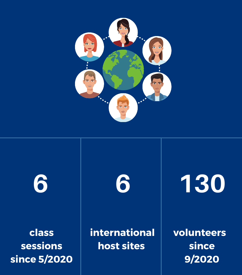 The pilot program for English Conversation Partners launched in May 2020. Eighty-two volunteers responded to the first request for help with this innovative program that matches stateside volunteers with English language learners in different parts of the globe.