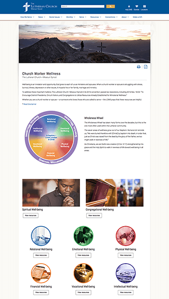 I’d like to introduce you to the worker wellness page, developed by the Office of National Mission of the Lutheran Church—Missouri Synod, with insight and resources from many partners.