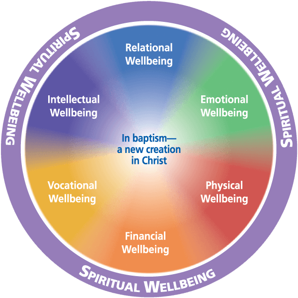 These seven areas have our Baptismal identity at the core — who and whose we are in Christ — and are wrapped all around by our spiritual well-being.