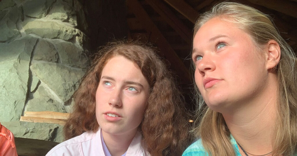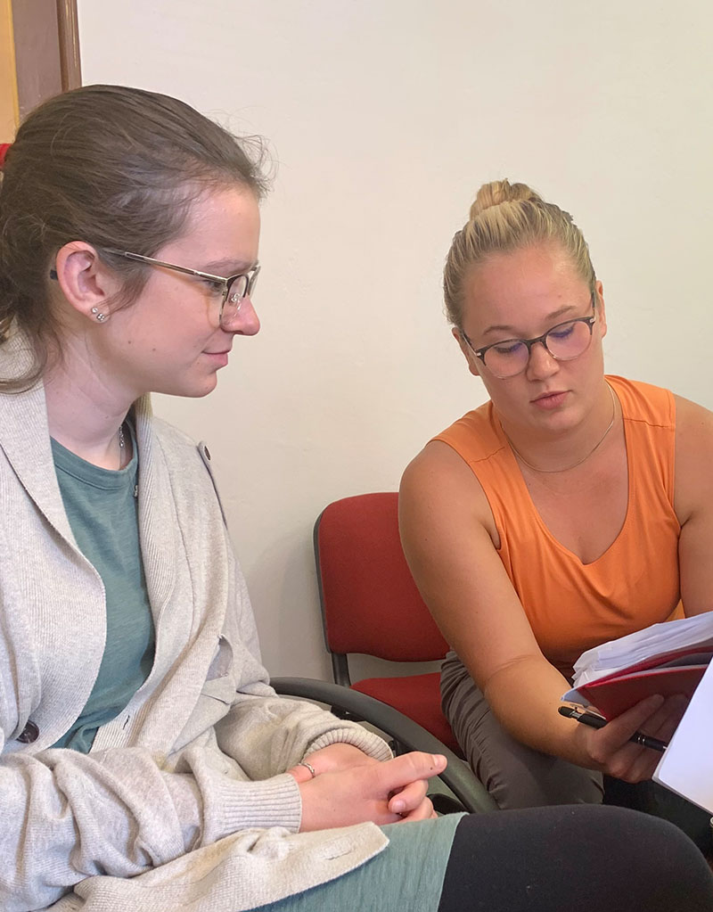 Lydia Steinhaus, right, listens to interpreter Asia Piętak during a visit to the Czech Republic in August 2022. Steinhaus was there to consider serving as a missionary for The Lutheran Church—Missouri Synod. (Photo courtesy of Chelsea Irwin.)
