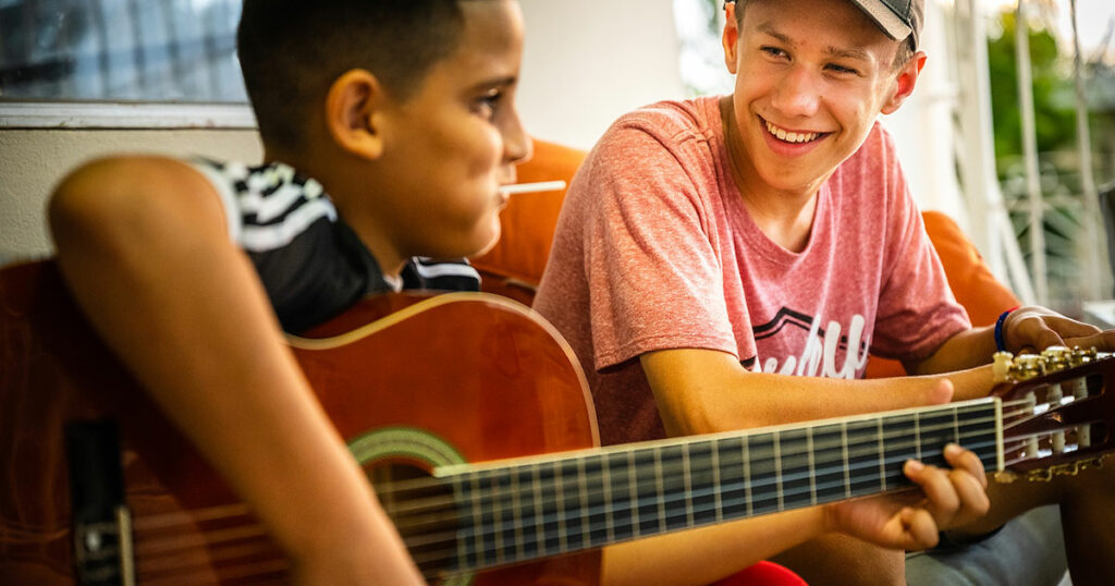 We play our instruments along with them, making up silly songs as we go. In the little time we spend with them, we can make an incredible impact on their lives. We encourage them to keep up the hard work and stay committed to playing their instrument.