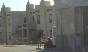 My wife caught a picture of me praying with one of the least of the brothers among us and providing human care.