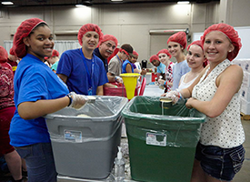 On a much larger scale, the 2013 LCMS Youth Gathering, participants packed 323,000 meals on the floor of the convention center. They filled small bags of lentil casseroles to be distributed in San Antonio, to victims of Superstorm Sandy, and other people in need. Each small bag included all natural ingredients and the right nutrients to help sustain people who struggle to find their next meal. The goal for the 2016 Youth Gathering is to pack 500,000 meals. This effort to eliminate hunger is so important that money from registration fees, LCMS Mercy funds, and a special WeRaise fundraising campaign have all been engaged to help meet that goal.