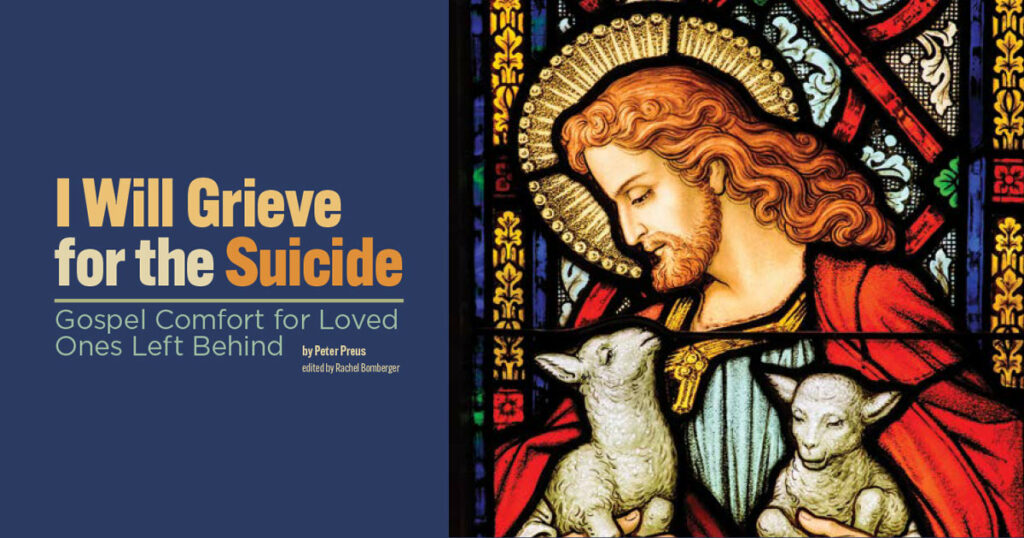 In this book, the Rev. Peter Preus provides Gospel comfort for those who are left behind after a Christian commits suicide. He addresses the stigma, psychology and theology of suicide, as well as the grieving process that follows it.