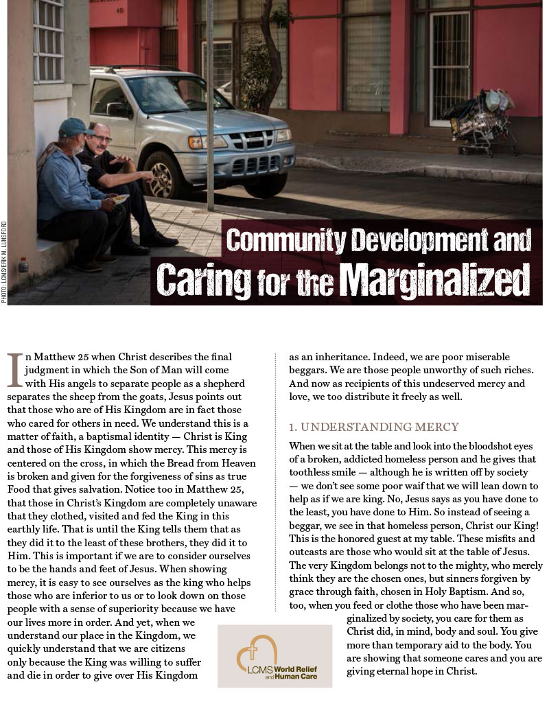 LCMS Urban & Inner-City Mission offers the following helpful resources to assist in caring for the marginalized, including the homeless and others in need.