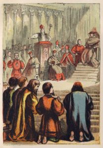 Through his writing, Barnes came to the notice of Thomas Cromwell (the new and Protestant English Chancellor). By this time, Henry VIII wanted a divorce from his first wife, and when the pope denied him, he turned to the Protestants. Barnes was appointed to carry Luther’s reply to Henry VIII on the divorce issue and so returned to England under safe conduct from the king. The news was not good, however, as Luther rejected Henry’s case for divorce, and the political climate was unsafe, so, Barnes returned again to Germany the following year. This was the beginning of a precarious relationship between Robert Barnes and King Henry. Barnes needed protection and acceptance in England in order to teach and preach. Henry needed a willing and loyal subject who had strong ties to the Lutheran princes of Germany. Cromwell was promoting an alliance between England and the Lutheran Smalcald League, and this meant that Henry had to accept the Augsburg Confession. Theologians from both sides met for discussion, including Robert Barnes and Philip Melanchthon.